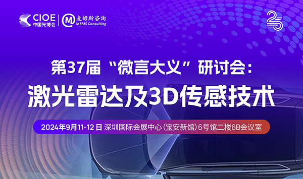 激光雷达与3D传感市场前景广阔,众多厂商正在一路高歌猛进,新技术方案与颠覆性成果亦层出不穷,这为整个3D视觉行业带来了前所未有的机遇和挑战,同时也预示着将迎来竞争激烈和行业整合的新阶段。鉴于此,2024年9月,麦姆斯咨询将再度携手中国国际光电博览会(CIOE),诚邀全球激光雷达及3D传感产业链上下游厂商共襄盛会,分享真知灼见,共谋产业发展!免费会议报名